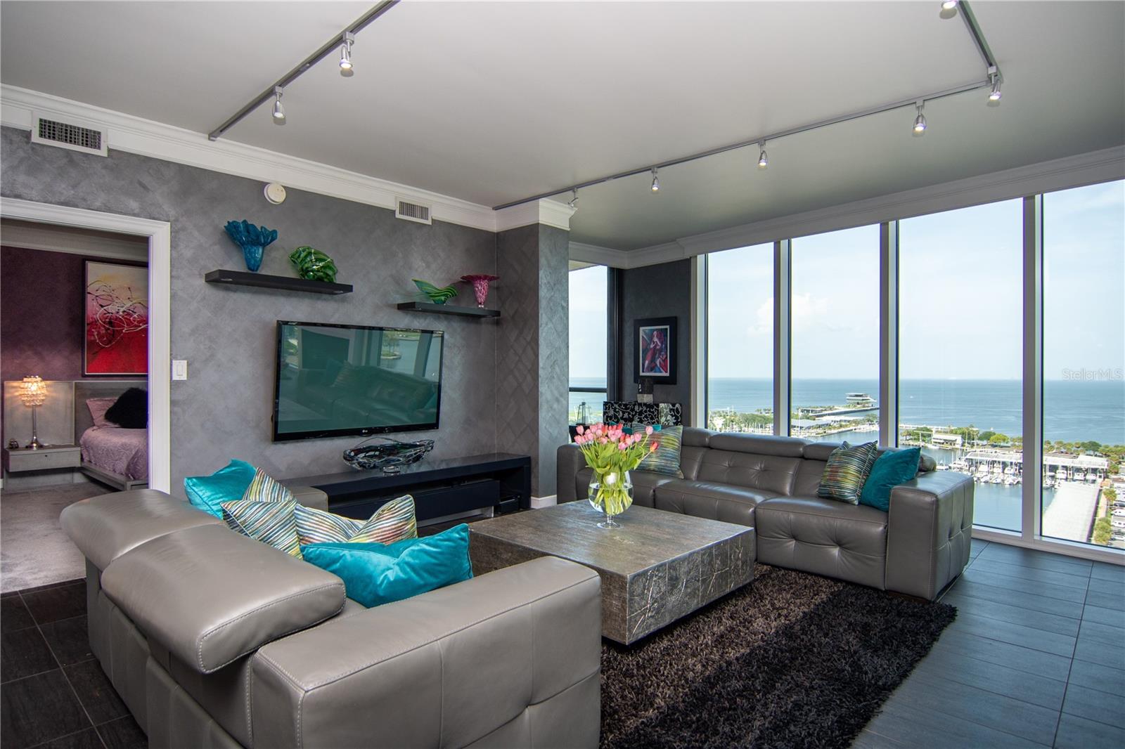 Fully Furnished, stunning and spacious 2 bed 2 bath Bayfront Towers condo overlooking the sparkling Tampa Bay waters. This owner spared no expense with all the upgrades and beautiful details and design you desire. The sleek expansive kitchen features new appliances, cabinetry, and more. The owners suite with en suite bath is unlike any other you’ve seen. Floor to ceiling windows showcasing the gorgeous unobstructed water views from your private terrace of multiple marinas, the St. Pete Pier, parks, the famous Grand Prix, museums, the Rowdies stadium, Mahaffey theater, Albert Whitted airport, and more. Soar to the top of the building to enjoy the recently renovated fitness center, sauna, library, yoga room, game room, party room and kitchen areas and an additional 360 degree views from your walking track on the top two floors of the building. The top floor refreshing and heated pool with an oversized deck, kitchen area, and gas grills is perfect for relaxing or entertaining in the sky overlooking the Bay! Building also has 24/7 concierge service, valet service, and maintenance. Just a short drive to International airports and the Gulf beaches. Live the ultimate downtown St. Petersburg waterfront lifestyle on Beach Dr. Schedule your private tour today!