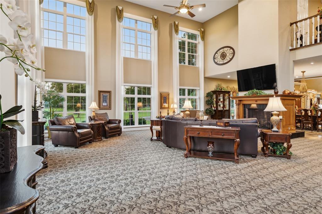 Greet your guest from your traditional style rocking chair front porch before inviting them inside to be in awe of the soaring ceilings, superb craftmanship, and a beautifully detailed functional space with an abundance of flowing natural light. Once inside, the grand aspects and visual openness of this home will catch your attention while setting the pace of what’s to come at every turn. The inviting stately comfort and massive visual open floor plan truly engulfs your senses leaving you wanting to stay. Your loved ones will gather in the kitchen around the large center island designed with a stone countertop and surrounding travertine back-splashes, prep sink, 2 walk-in pantries, commercial grade gas cooktop, double oven & custom refrigerator. Get cozy watching the big game in the Family Room with towering ceilings to all floors and a rising custom large brick fireplace. Entertain guests in the two-story Great Room which opens to a tranquil outdoor setting, summer Kitchen w/ TV, several Outdoor sitting areas, Lazy River pool, and heated Spa. End your evenings watching the sunset from your 2nd floor private veranda or relaxing by the gas firepit. Enjoy your choice of any outside hobby in your 4900 sq ft custom Barn with 1,000 sq ft loft, kitchenette, laundry area and outside covered parking!