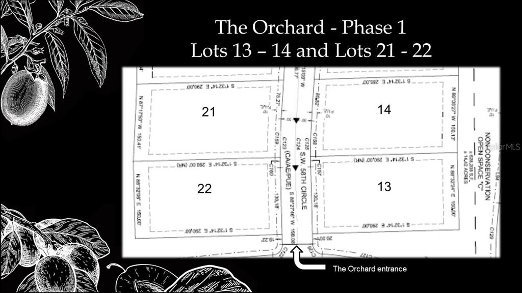 Lot 13 is a one acre corner lot that expands 150 feet across its rear property line. With a south facing front yard, its backyard abuts a large greenway. List price for lot INCLUDES an $8,000 premium. Gainesville’s first Agrihood, Flint Rock promotes a lifestyle of healthy living and wellness, carefully crafted to embrace the farm-to-table lifestyle. This luxury residential community is centered around its recreational spaces, nature trails, gardens, orchards and conservation preserve. With 2.5 miles of walking paths and expanses of land, its residents will enjoy more green space than your average Gainesville subdivision. Owners will have access to their Event Barn, a unique venue for hosting outdoor activities. The Residents’ Farmhouse will offer a full catering kitchen with spacious indoor gathering areas, surrounded by paver fire pit area and trellised swings under scattered pergolas for casual outdoor seating. Offering expansive green space, The Orchard gated subdivision has a unique U-shaped center that is almost 9 acres in size, featuring a collection of fruit and nut bearing trees along paved community walking paths.