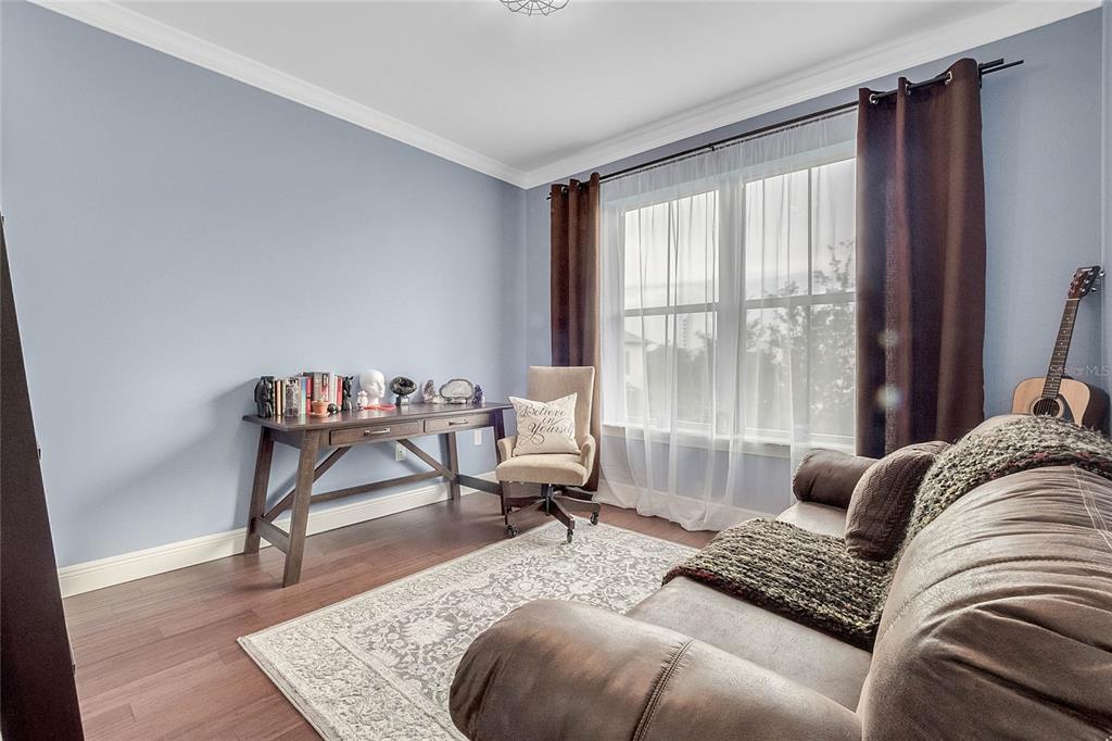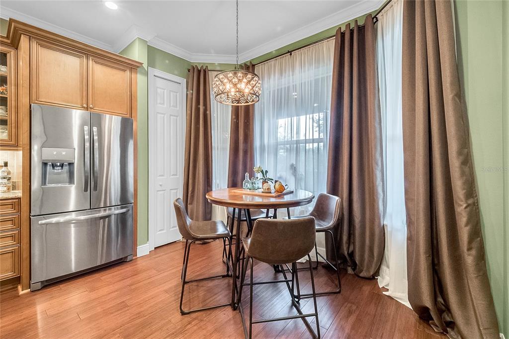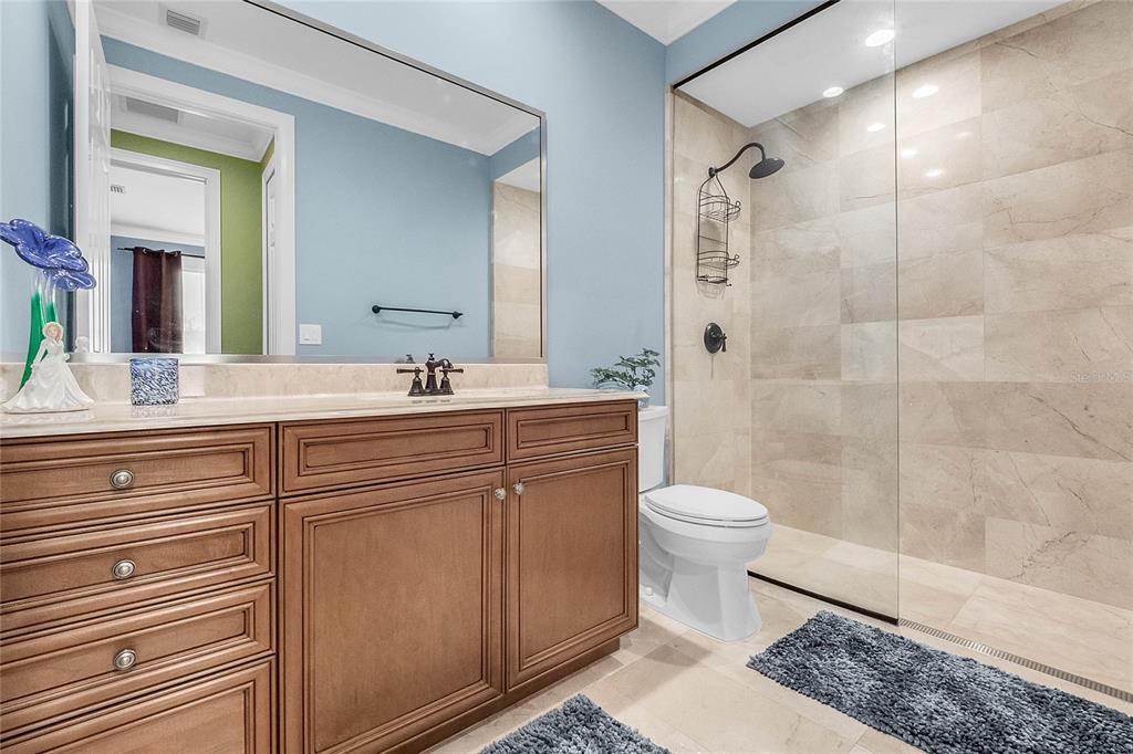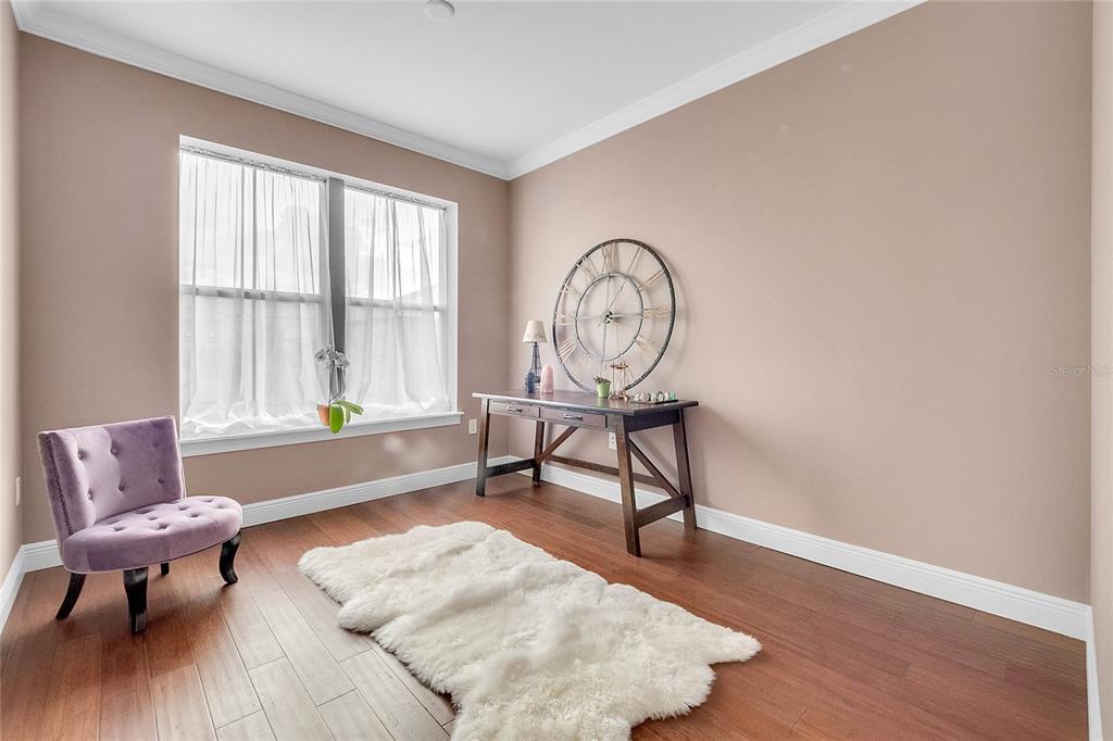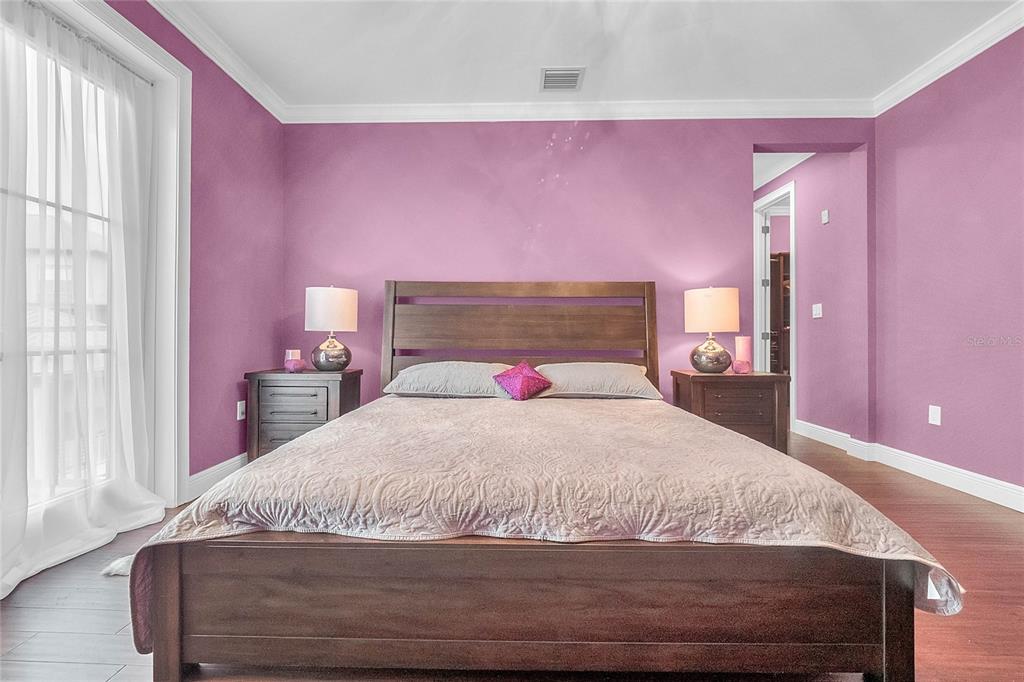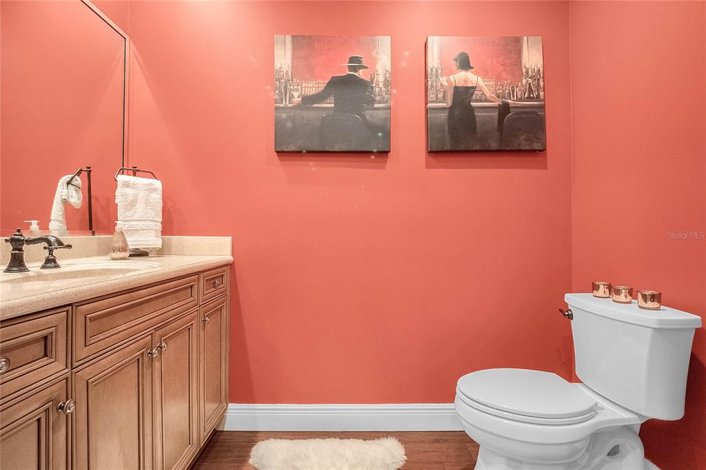 Downtown Celebration Residence :3 Bed, 2.5 Bath Exctensivly Remodeled 2-story, 2 private balconies, 1car garage Carlyle condo construction with double glazed windows, 10FT ceiling, 8FT doors and expansive floor plan. Hardwood Flooring with Crown Molding and Smooth Ceiling Finish applied throughout. Masonry work presents unique rock accents in Living/Dining area designed with a comfort in mind and perfect for relaxing. Custom built-in “Fireplace/TV combo wall” . All bedrooms are located upstairs. Spacious Master Suite with French doors opens onto balcony, has a walk in closet with built-in custom cabinets and shelves. Master Bath features a bathtub, dual sinks and a separate shower. Other Features Include: 42″ Maple Wood Kitchen Cabinets, Granite Countertops, kitchen Island plus eat-in kitchen breakfast nook, tankless water heater, LED lightning.