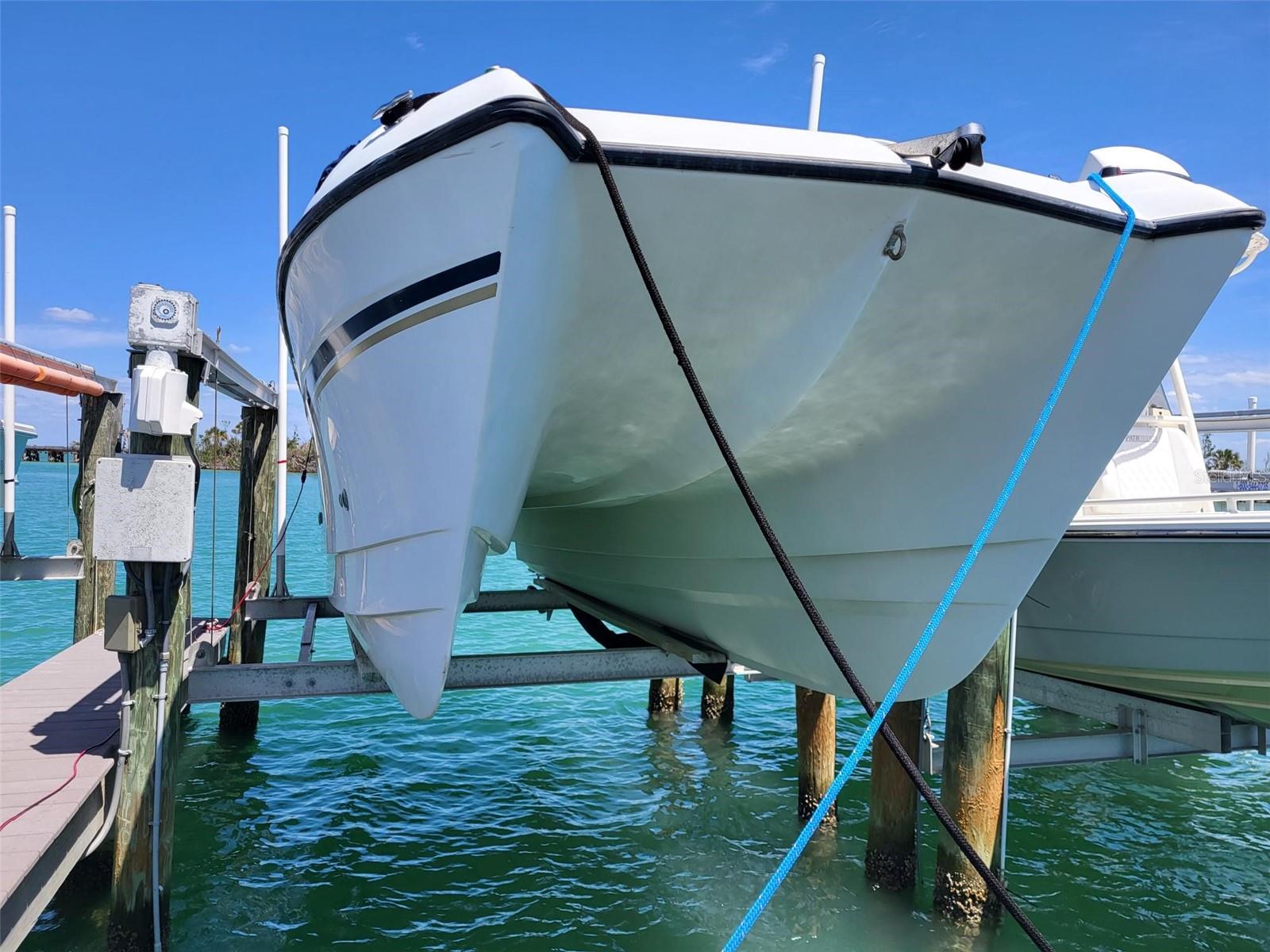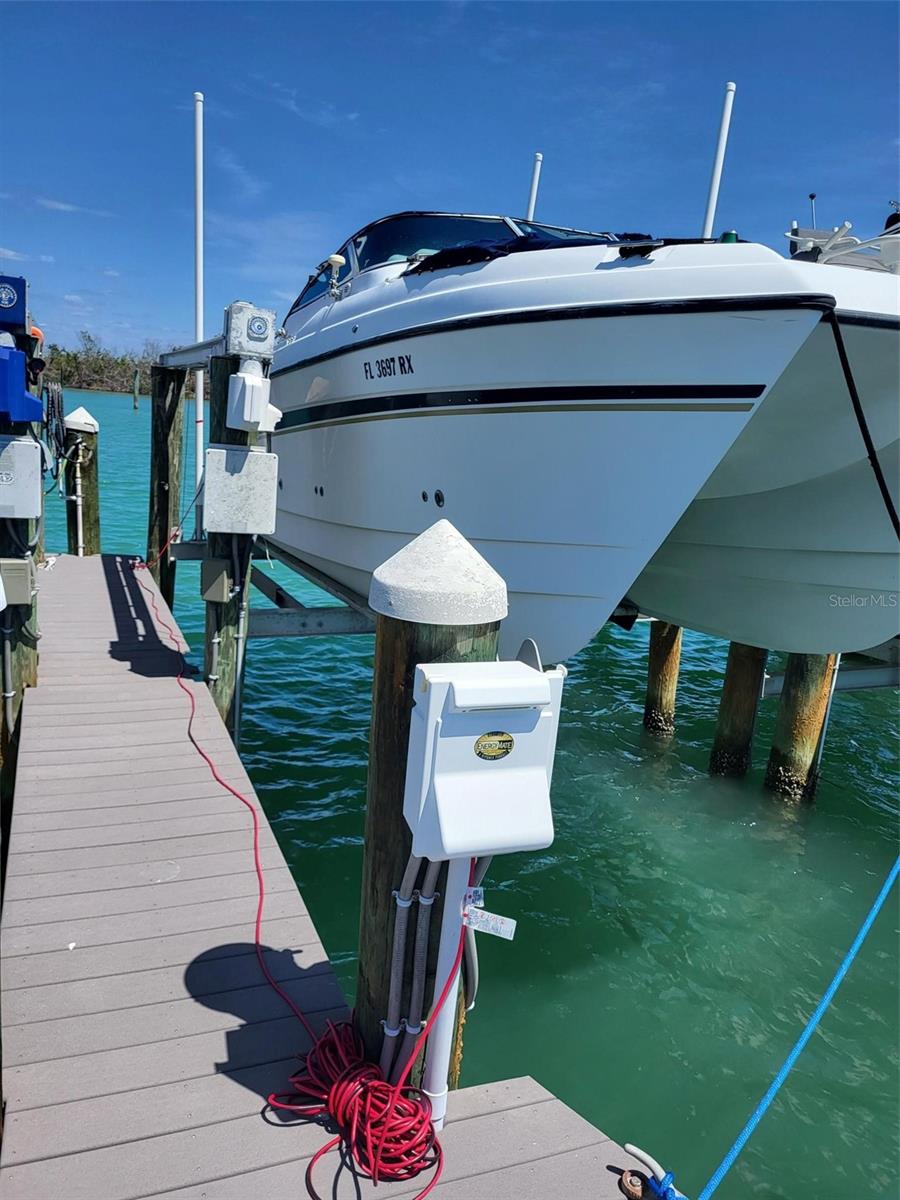 Boca Grande North deeded boat slip #40 with 4,000 lb lift! All docks replaced in 2012 with brand new maintenance free decking and pilings. Protected boat slip with quick access to fuel and no bridges to ICW and Gulf of Mexico in minutes. Water and electric included in quarterly association fee as well as reserves for replacement. Boat dock and lift sustained no damage from hurricane.